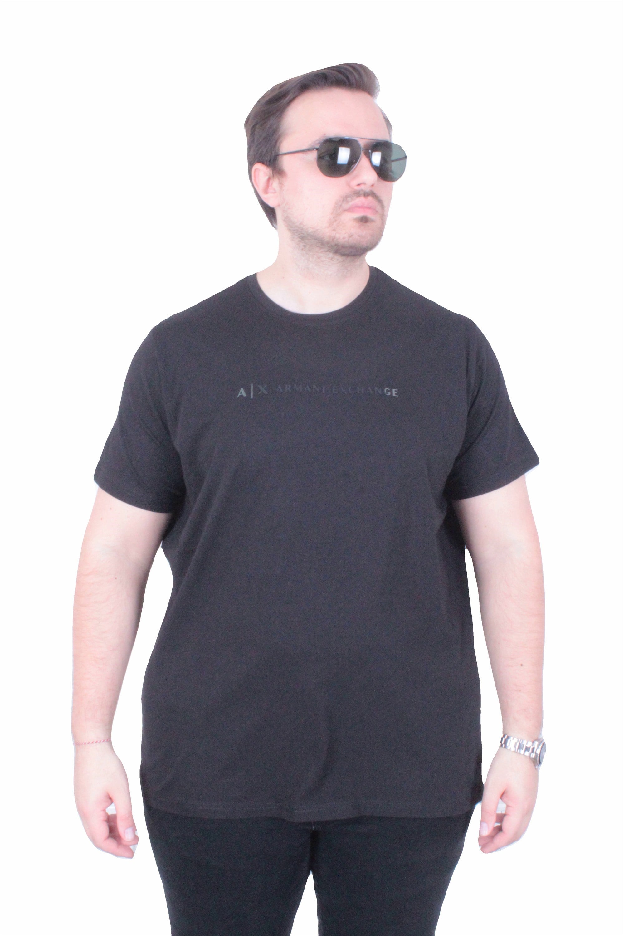 Erkek Büyük Beden Sıfır Yaka Tişört EA 26114 SIYAH (26Y.CK.UG.TBS.26114.0001-SYH)