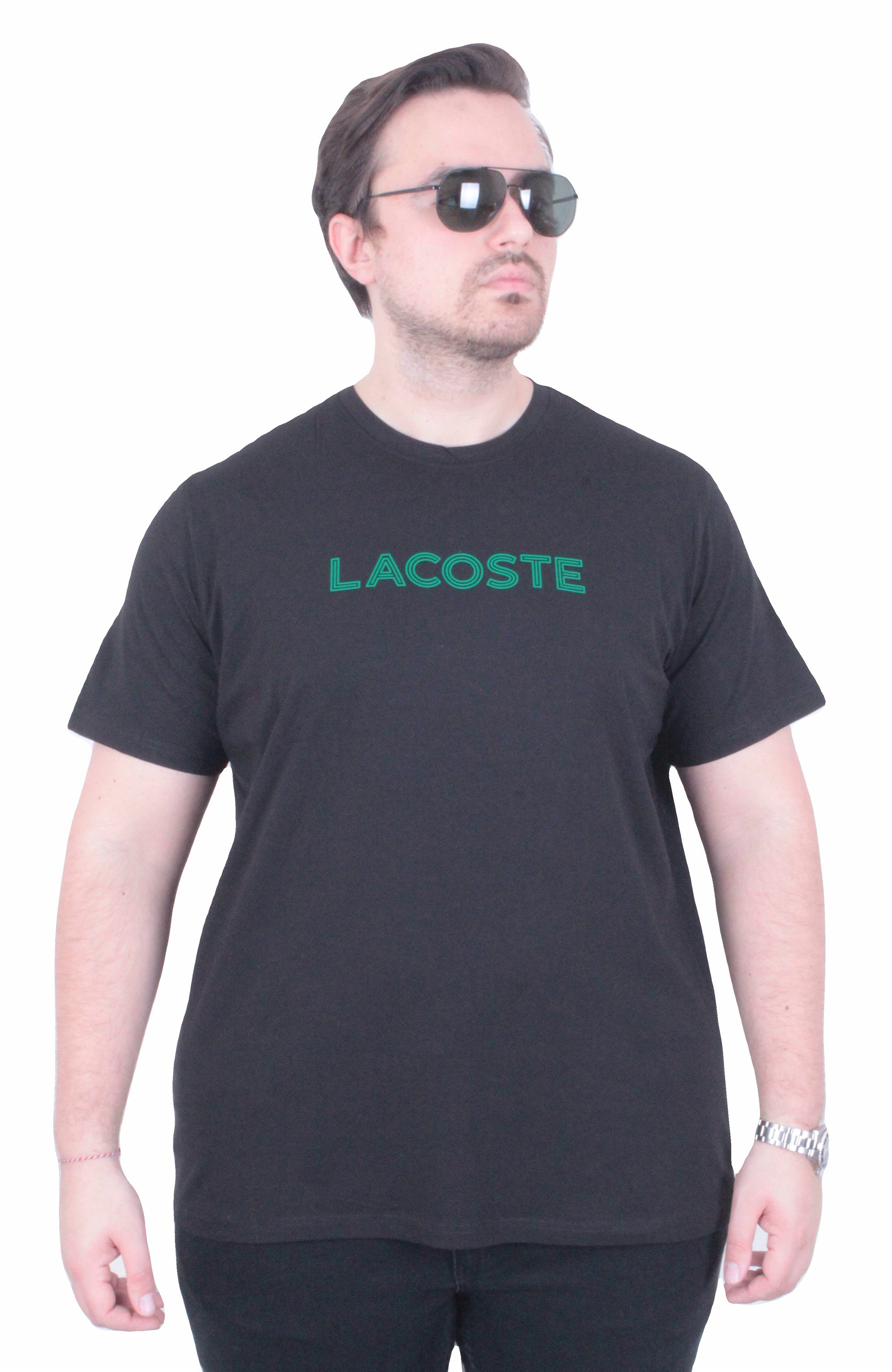 Erkek Büyük Beden Sıfır Yaka Tişört LCST 26112 SIYAH (26Y.CK.UG.TBS.26112.0001-SYH)