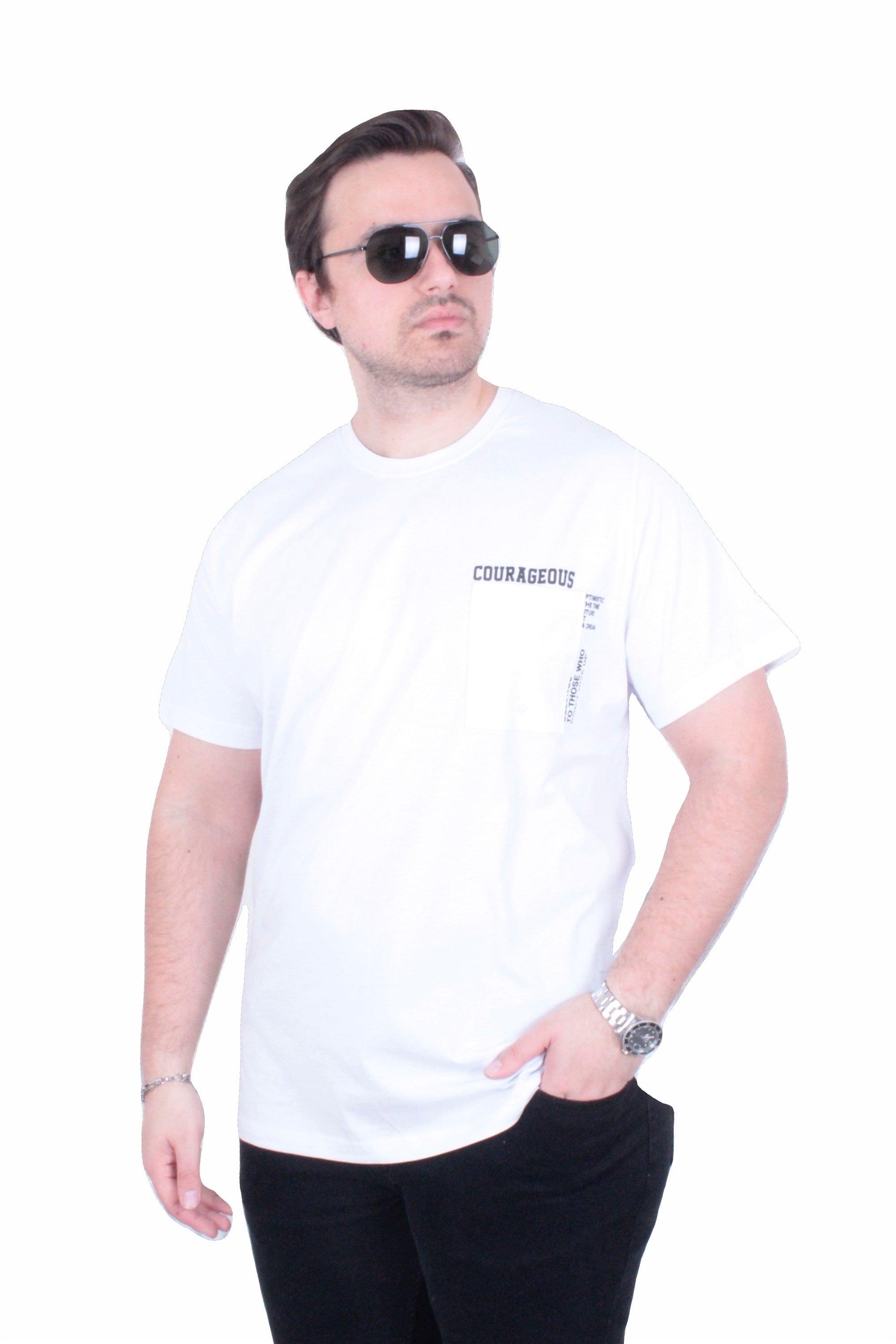 T-SHIRT BASKILI SIFIR YAKA COURAGEOUS 26146